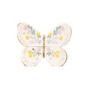 Piatti rotondi smerlati bianchi con bordo e pois oro. Ogni confezione contiene 8 piatti. Dimensioni 23cm.