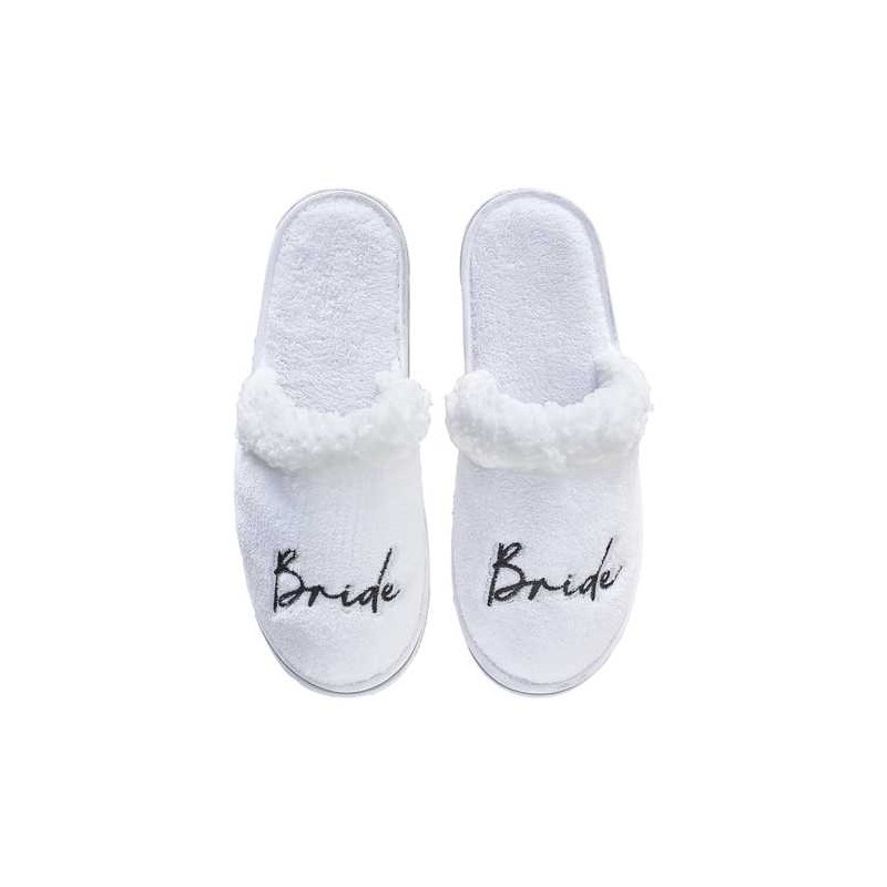 Ciabattine bianche in spugra, con ricamo BRIDE in colore nero.