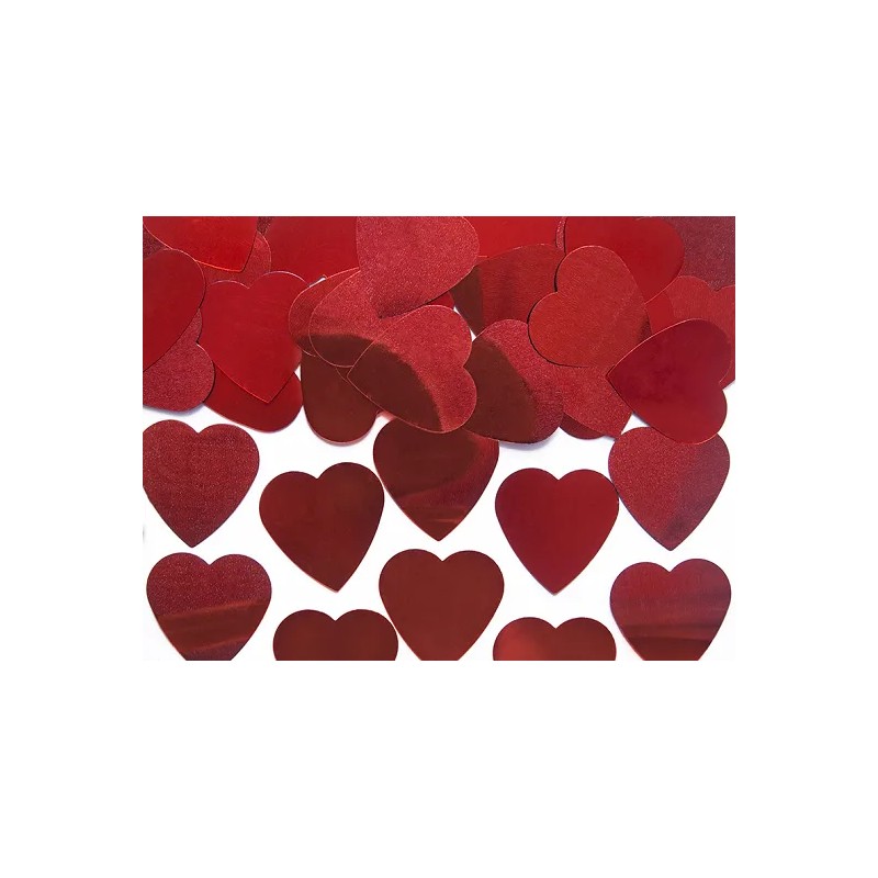 Coriandoli da tavola a forma di cuore rosso lucido.