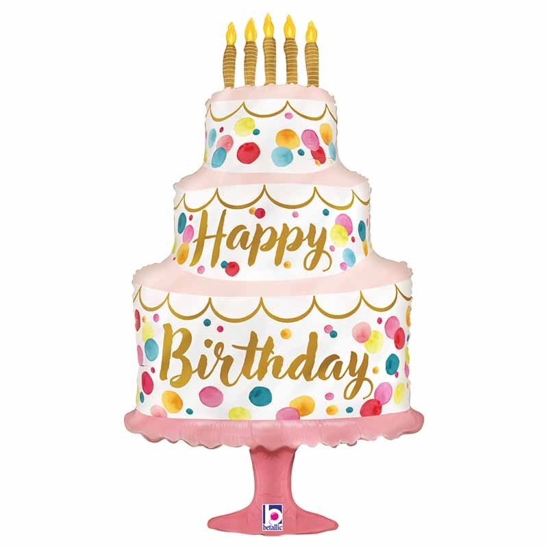 Dolcissimo palloncino a forma di torta, con la scritta HAPPY BIRTHDAY!