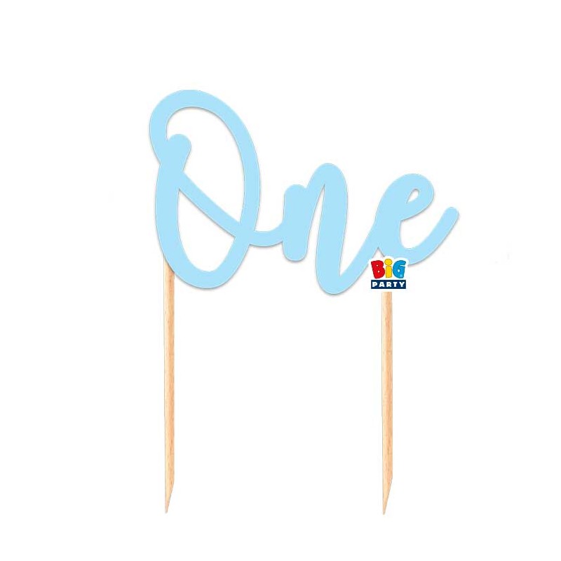 Topper torta "ONE" in cartoncino azzurro.