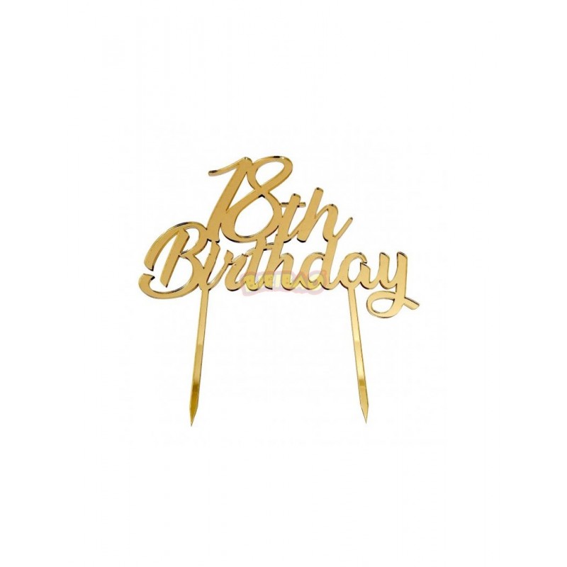 Elegantissimo topper in plexiglass dorato per decorare la tua torta e festeggiare il tuo diciottesimo compleanno!
