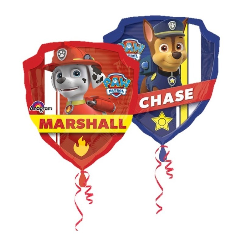Palloncino double face a forma di scudo con stampa di Chase e Marshall.