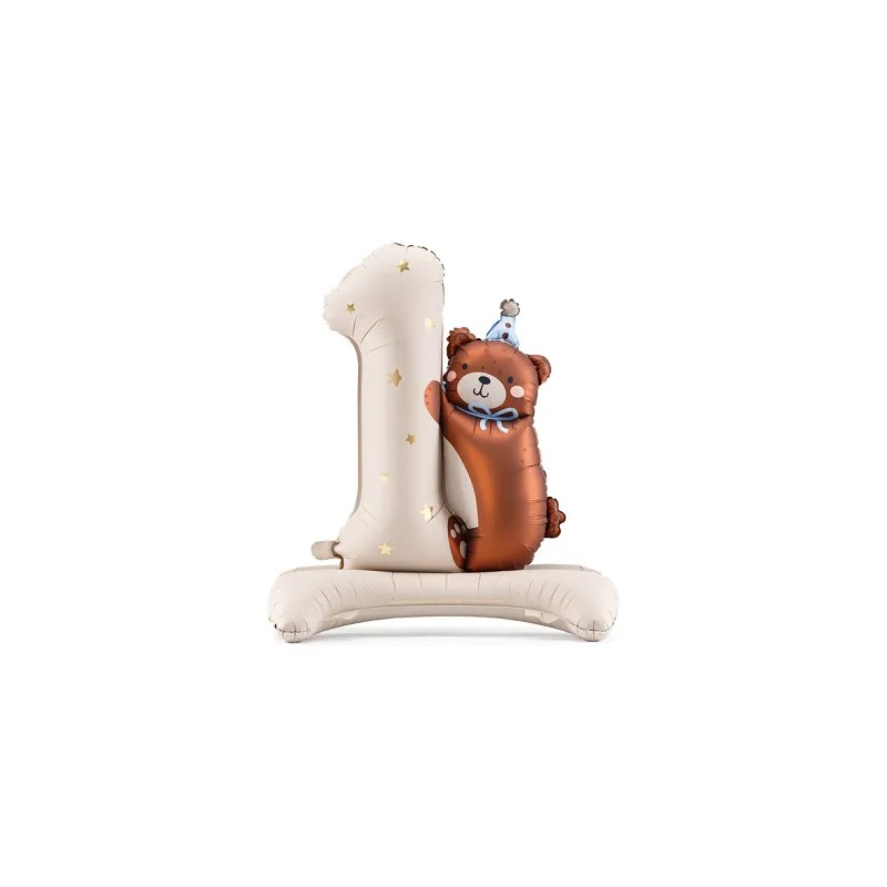 Palloncino dolcissimo a forma di 1 con un tenero orsetto aggrappato a lui.