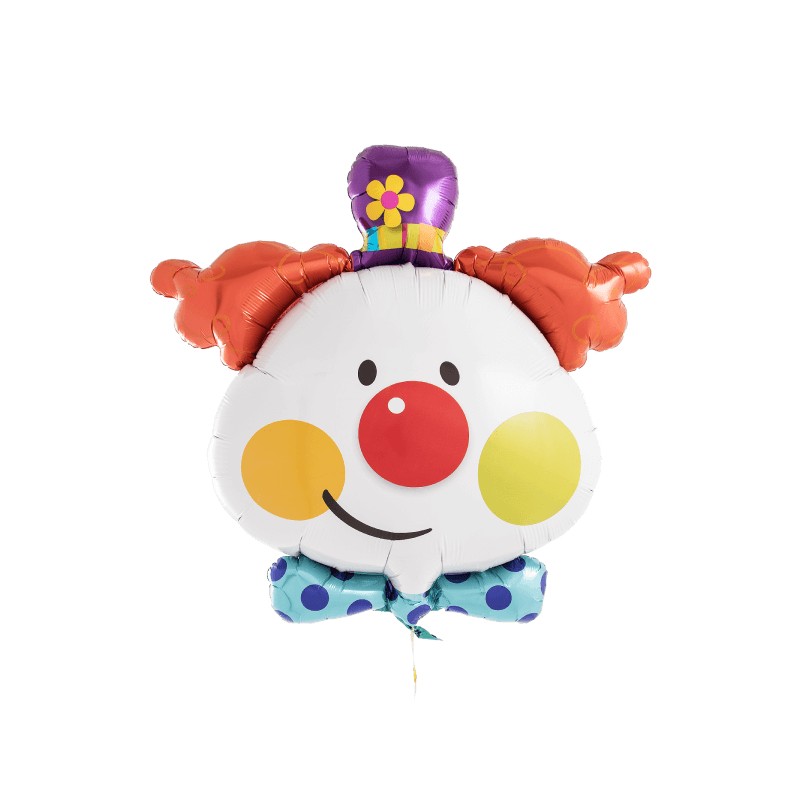 Simpatico palloncino sagomato a forma di faccina di pagliaccio.